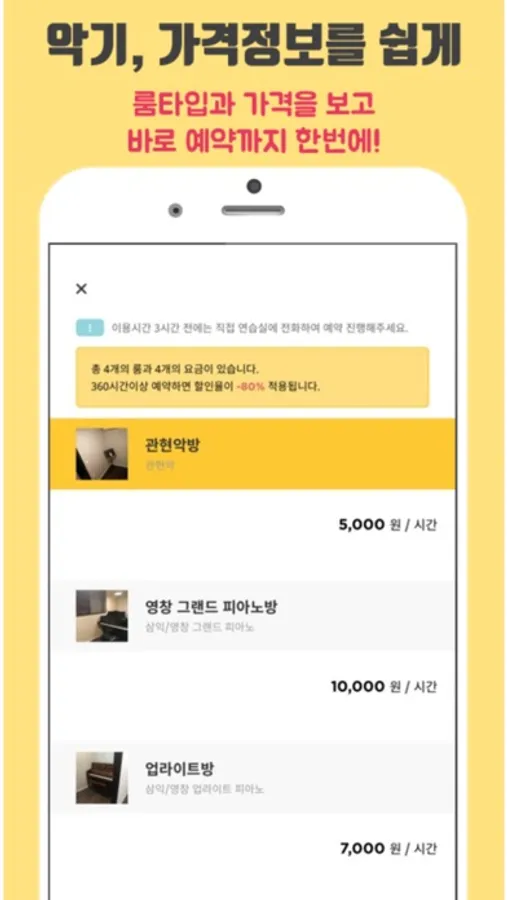 ▶ 전국 연습실 위치, 가격, 악기정보 등을 한눈에! 쉽고 빠르게 검색/예약 가능합니다!