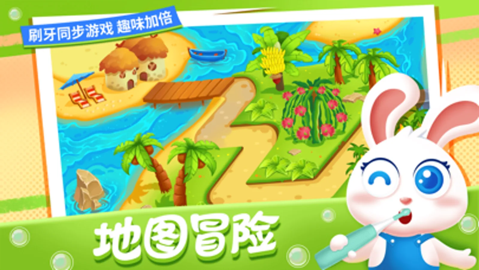 地图:主题为“送迷路的小动物回家”,抓住小朋友有爱心的心理,通过刷牙令小动物获得水果蔬菜,增加自身的能量前进。通过动效和细节方面来表达主题,吸引小朋友去完成刷牙的任务。