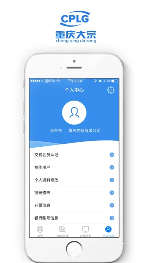 4,个人中心 修改资料 开票信息 操作用户 会员认证 银行信息等