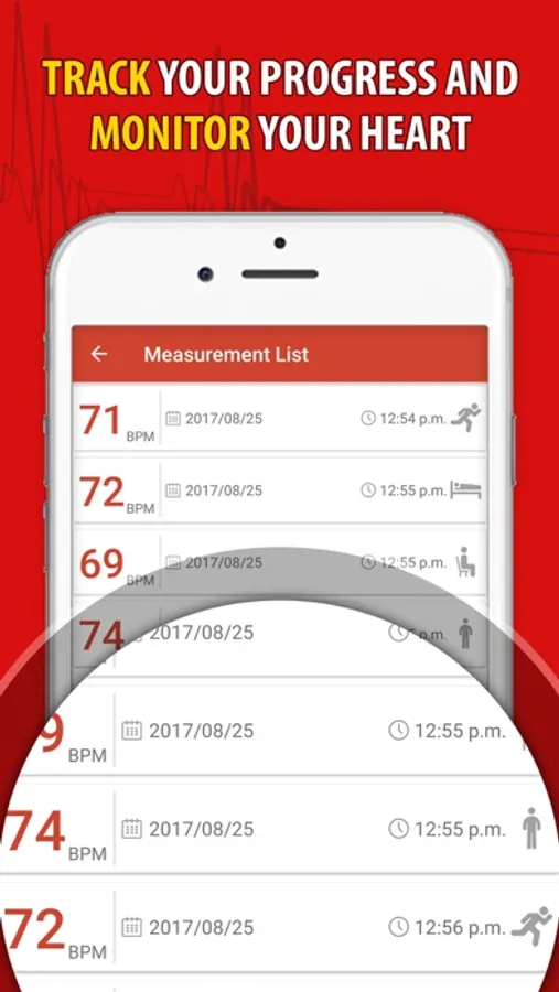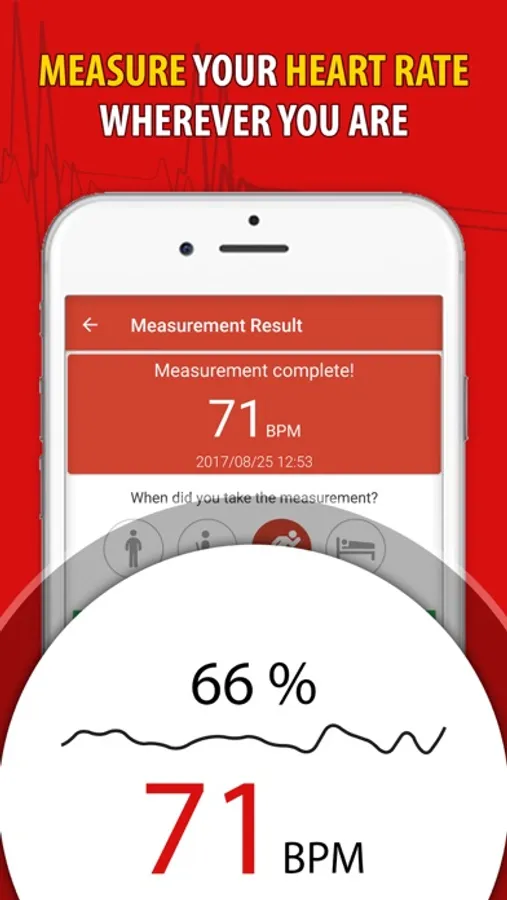 Put your finger near camera and keep your finger still this will measure your heart rate. You will identify your position(sitting, standing, running and sleeping) and then save it this will give your graph of BPM.Track your progress and keep yourself fit.