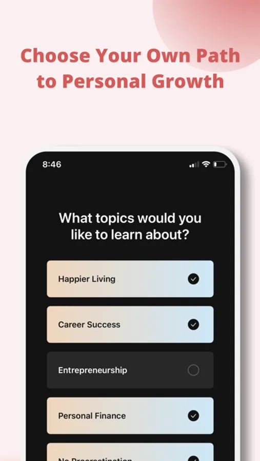 Our stories are designed to deliver the most useful and important insights to help you achieve your personal and professional goals. And our courses are divided into bite-sized, actionable lessons from experts like Mark Manson, Arianna Huffington, and Tim Ferriss.