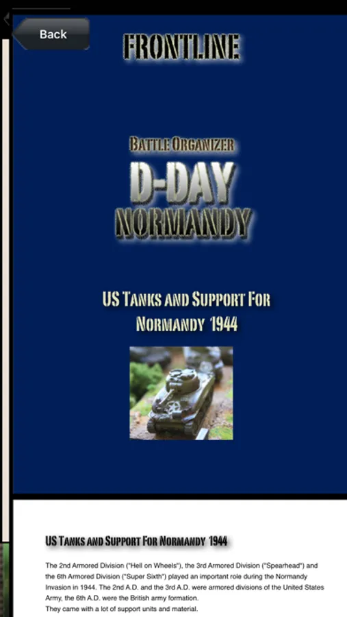 New to the series, with slight improvements and little more background information to the company and tanks. This app helps you to quickly organize your US Tank Company for a typical 15mm tabletop game together with the Book "Turning Tide" (You need a copy of this book to fully use the content of this app).