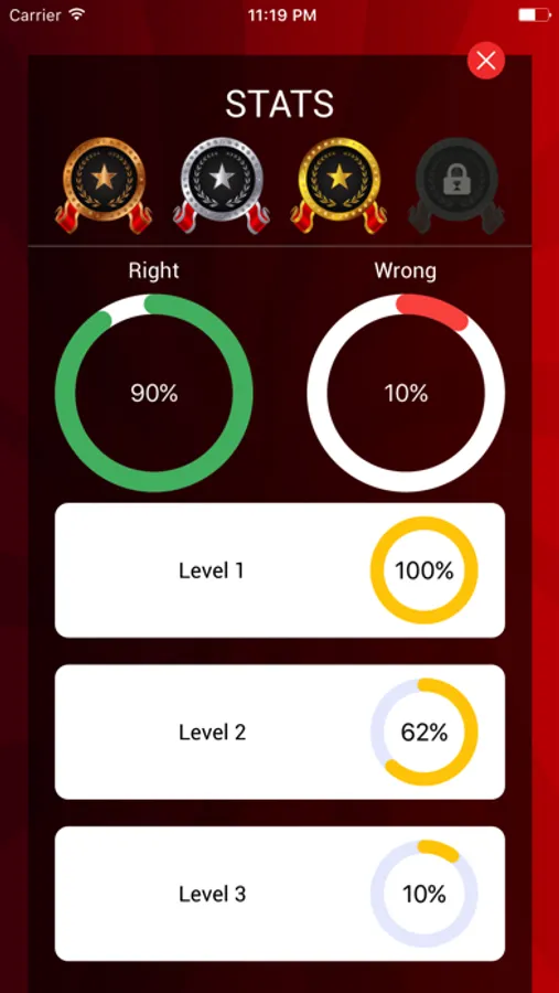 Game play is simple and easy you have one minute and answer as many questions you can. Detailed statistics with record of answered questions.
