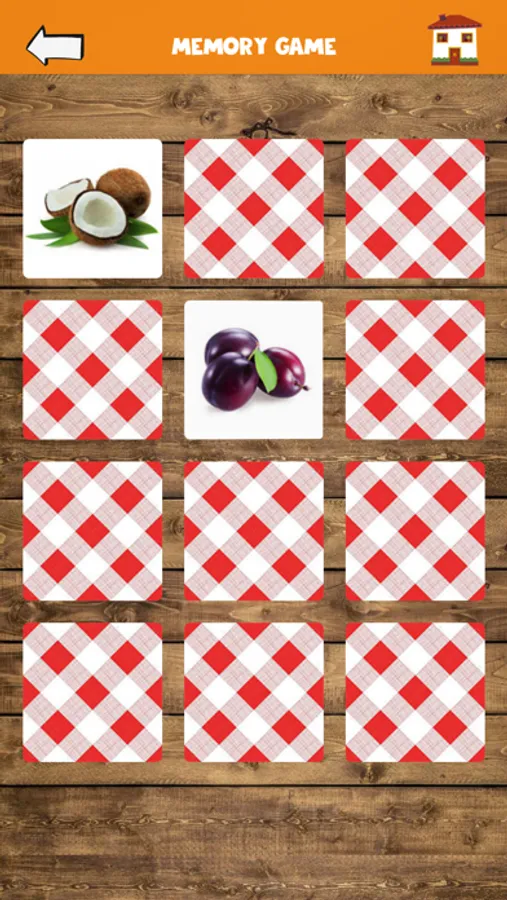 Memory game; Find pair of fruit flashcards and match them, kids can check his memory power.