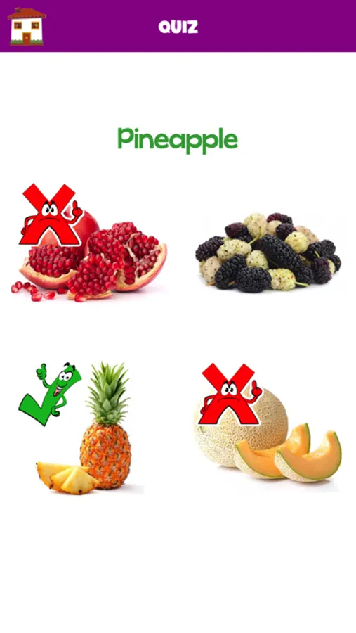 Quiz; Select correct question fruit among the four fruits.