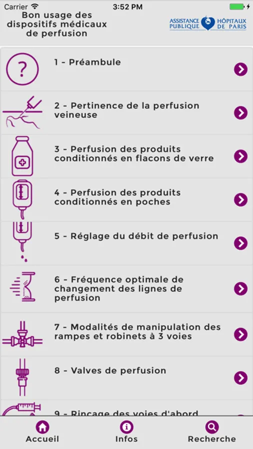 Une application mobile destinée aux professionnels de santé pour contribuer au bon usage des Dispositifs Médicaux de perfusion.