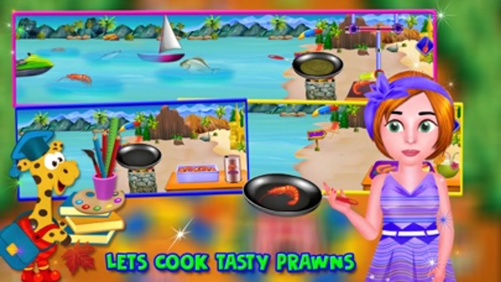 Wow! Little fish catchers, you catch fishes and prawns for our yummy and delicious lunch. Act like a cooking chef! Fry yummy and delicious fish or prawn with you own choice. As you know the process of cooking sea food both fish and prawns are different. Cook with different fresh ingredients.