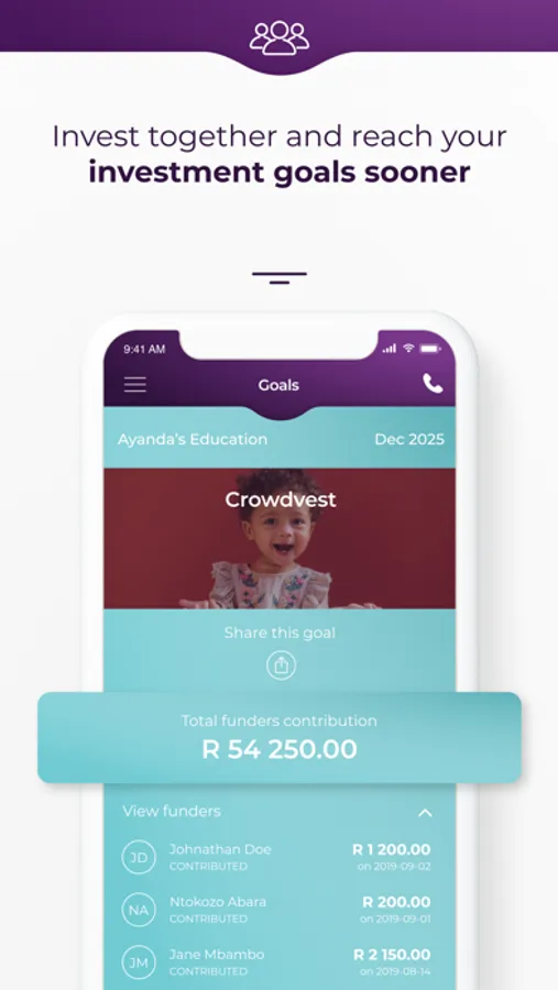 • Crowdvest – our revolutionary feature which allows you to invite friends and family to contribute to help you reach your goal.