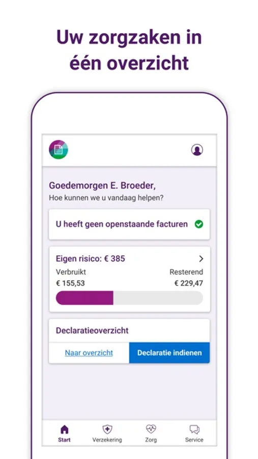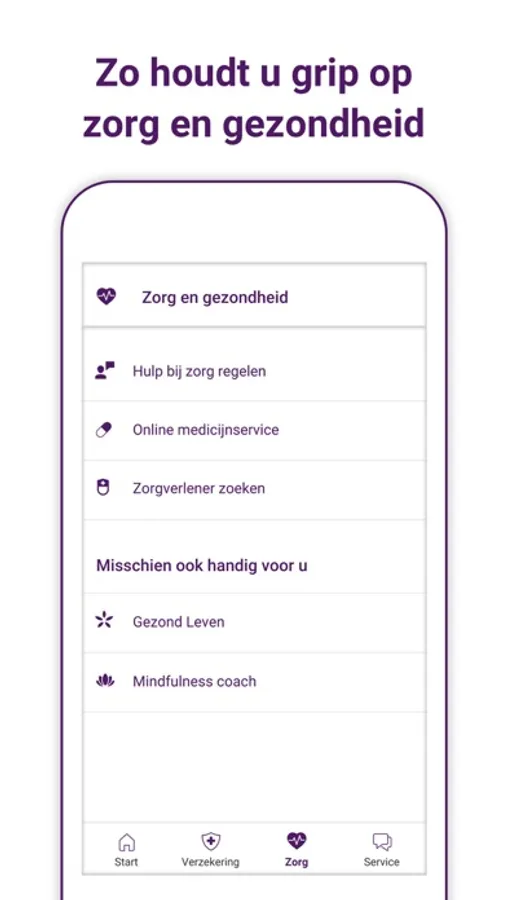 Gezonder leven is niet altijd makkelijk. Daarom helpen we u graag met handige services rondom gezondheid. En heeft u toch zorg nodig? Dan kunt u via onze app snel en gemakkelijk uw zorgzaken regelen. Voor uzelf, of voor anderen op uw polis.