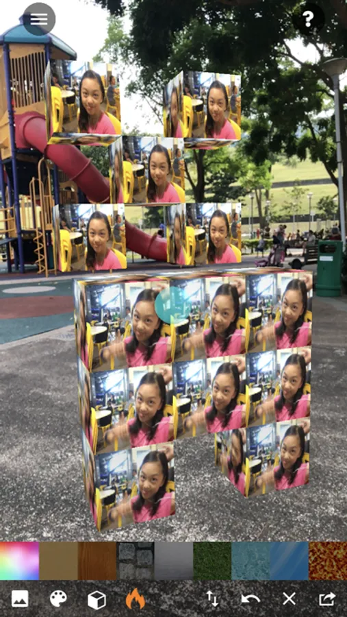 You can create AR structures in the air! Build a wall, build a house, or even a castle! Explore the wide range of textures provided, or you can even use your own photo for added creativity and fun!