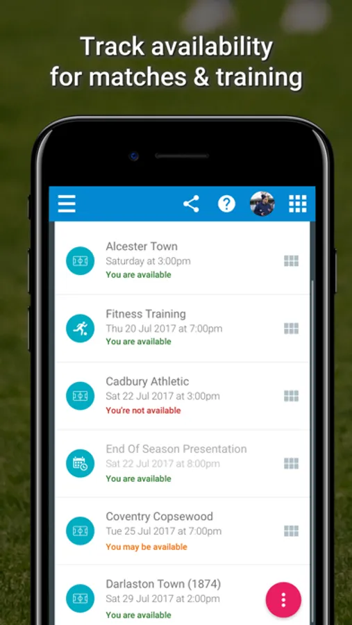 Efficiently manage your football squad’s schedule and track player availability with the availability app, and ensure you have a full squad ready for every game.