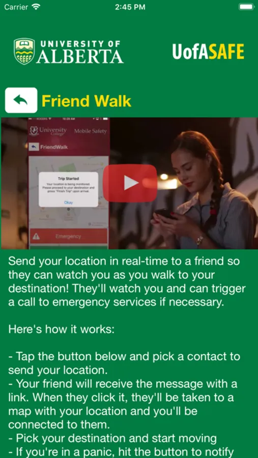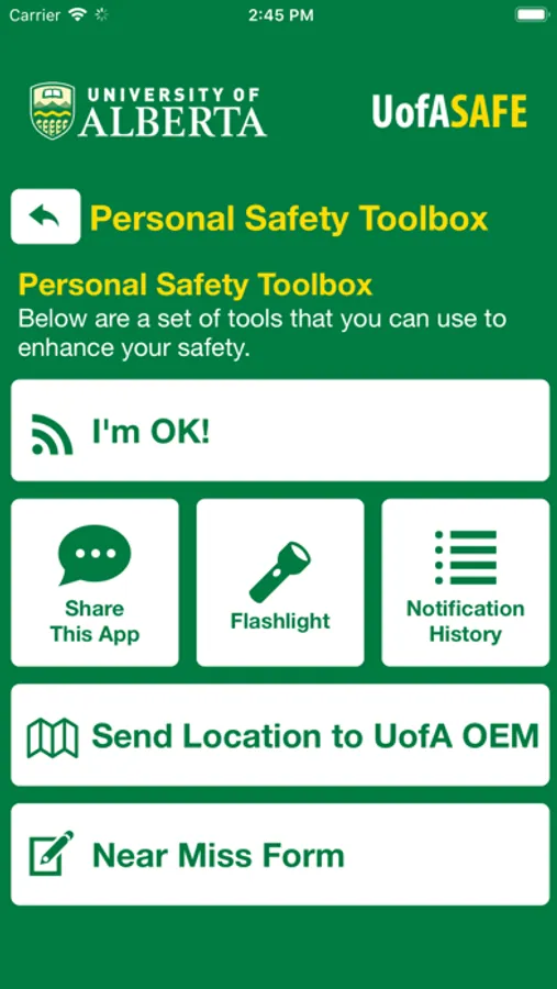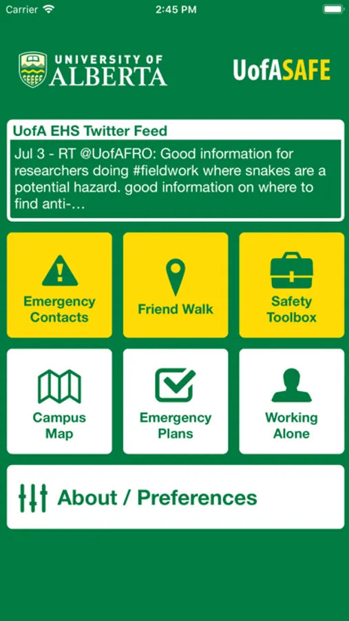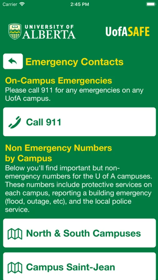 - Campus safety resources: access all important University of Alberta safety resources in one convenient app.