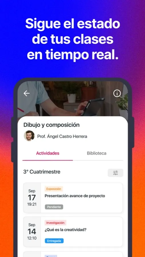 · Revisa actividades como tareas, proyectos, exposiciones, etc.
