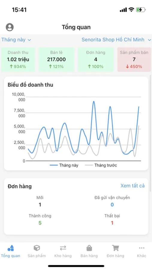 * Tổng quan cửa hàng: Thống kê báo cáo về doanh thu, đơn hàng, sản phẩm,... một cách tổng quan, dễ hiểu.