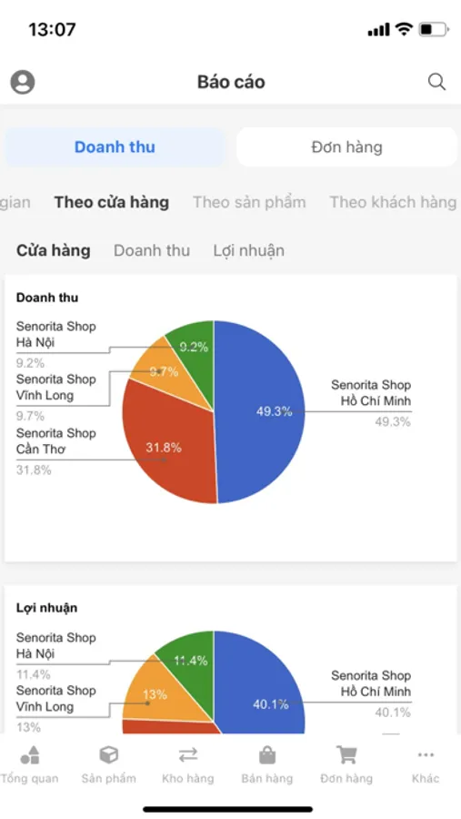 * Báo cáo: Xem đầy đủ các thông tin cần thiết về doanh thu, sản phẩm, đơn hàng theo thời gian và tiêu chí mà hầu hết nhà bán nào cũng cần biết.
