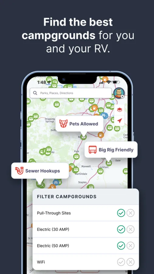 We know internet connections can be non-existent when you're camping. We built our app to work offline. You can download our entire campground knowledge base including maps so the RV GPS will work, no internet connection required.