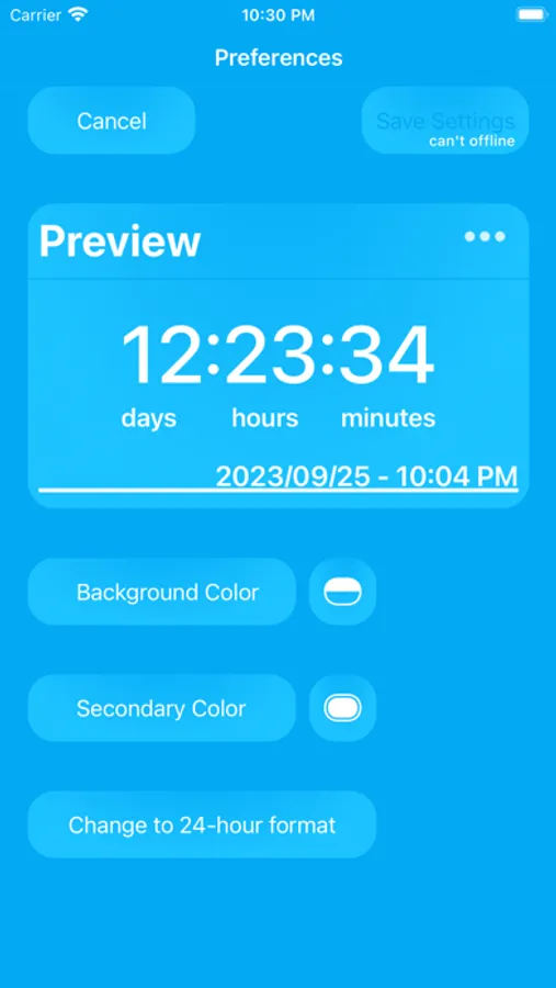From the menu located in the top bar, you can choose one of the many background and text colors, a date format (AM/PM or 24-hour ).