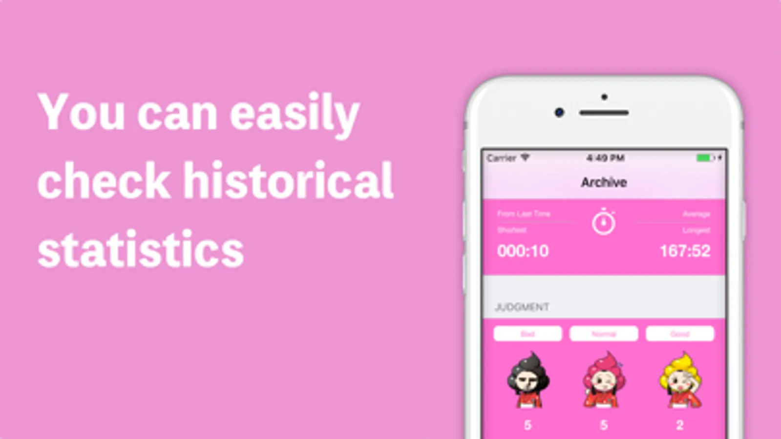 · An archive function that can check the time interval of defecation and the number of recordings from the previous time