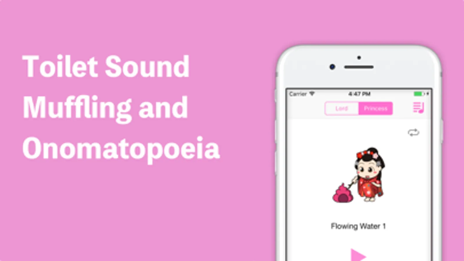With this application, two modes are installed on the imitation sound for the toilet!In addition to the Princess version where the classic "running water sound", "bird's chirping" "bird's bell sound" flows, the brave sound such as "conch," "shouting" "battle" you can do it.