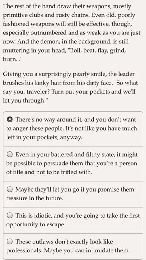 "Foundation of Nightmares" is a 100,000 word interactive fantasy novel by Samuel Harrison Young, where your choices control the story. It's entirely text-based—without graphics or sound effects—and fueled by the vast, unstoppable power of your imagination.
