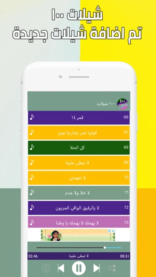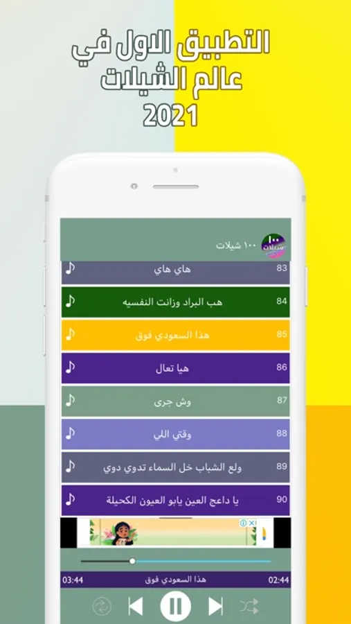 تطبيق شيلات ١٠٠ بدون انترنت يحتوي على اجمل ١٠٠ شيلة موجوده حالياً وتعمل بدون انترنت