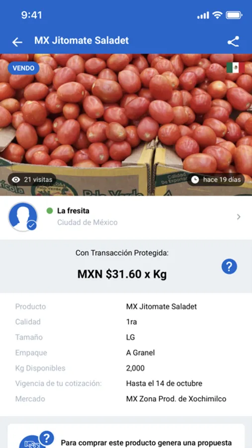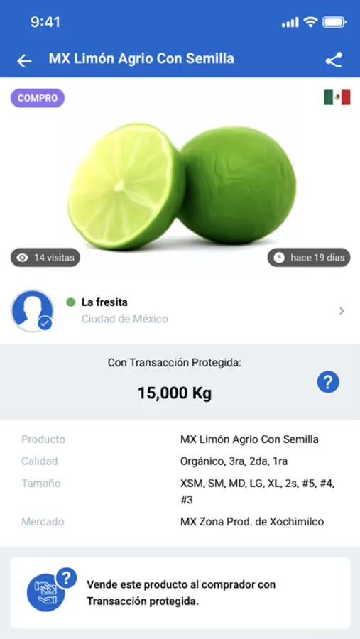 Contacta con más de 170 mil productores y mayoristas para comercializar con ellos de forma segura utilizando una Transacción Protegida.