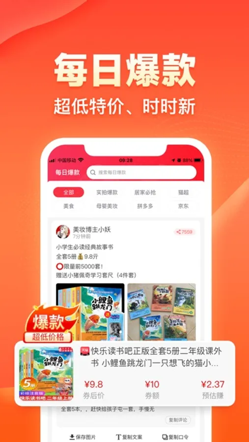 截止到目前,爱客宝注册用户超过900万,整合了百余家电商平台的海量商品,覆盖日常生活的方方面面,让广大用户购物省钱、乐享品质好货的同时,获得兼职推广的创业良机。