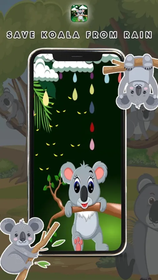 Little Koala needs to get home without getting wet… well, at least without drowning. Run Little Koala through the rain.