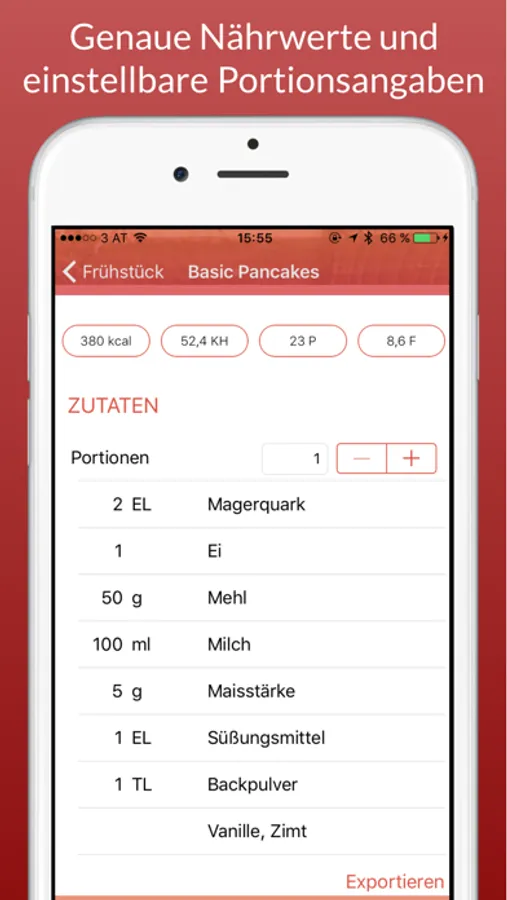 Dank der automatisch verstellbaren Portionenanzahl kannst du die Rezepte auch ganz einfach für die ganze Familie kochen und mithilfe der Nährwertangaben hast du immer im Blick, wieviel du zu dir nimmst.