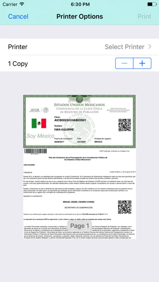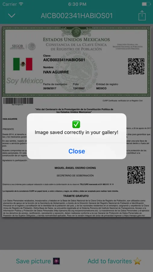 When you consult your CURP you can save an image to share it by Message, iMessage, WhatsApp, Messenger, Twitter, etc.
