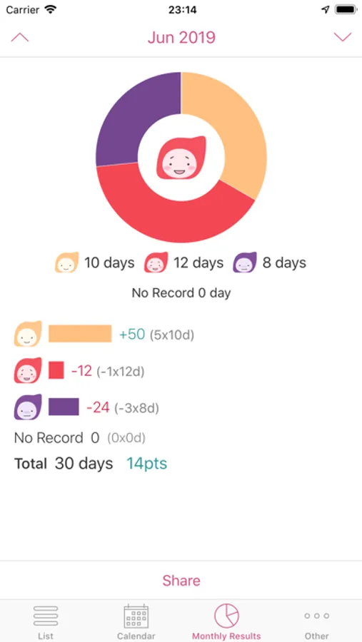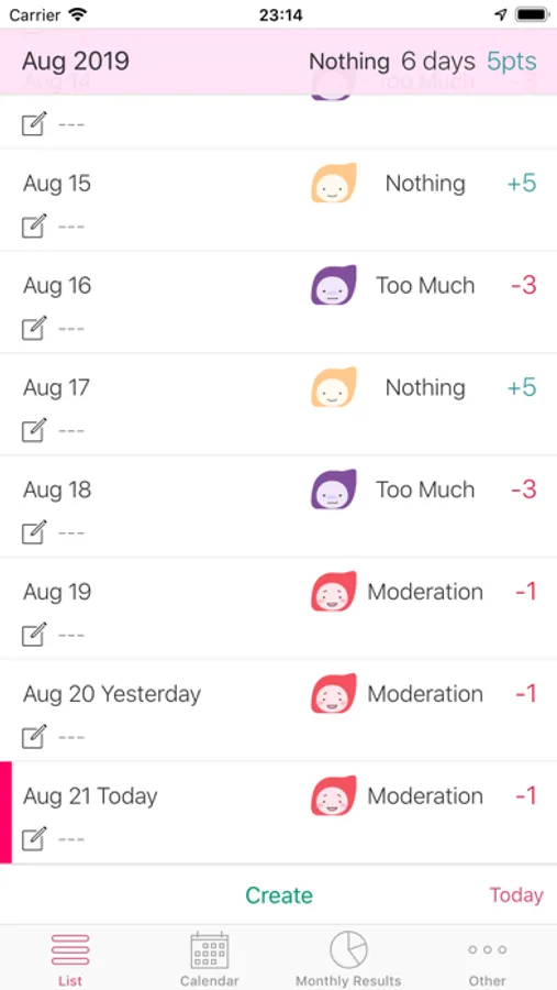 Record your alcohol-free days with a simple interface. An app for logging drink free days that can display your results each month as a score, making it easy to set goals for yourself.