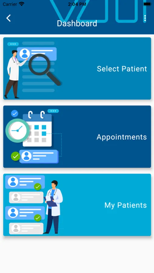 2. Appointments screen: Displays the patients’ scheduled appointments.