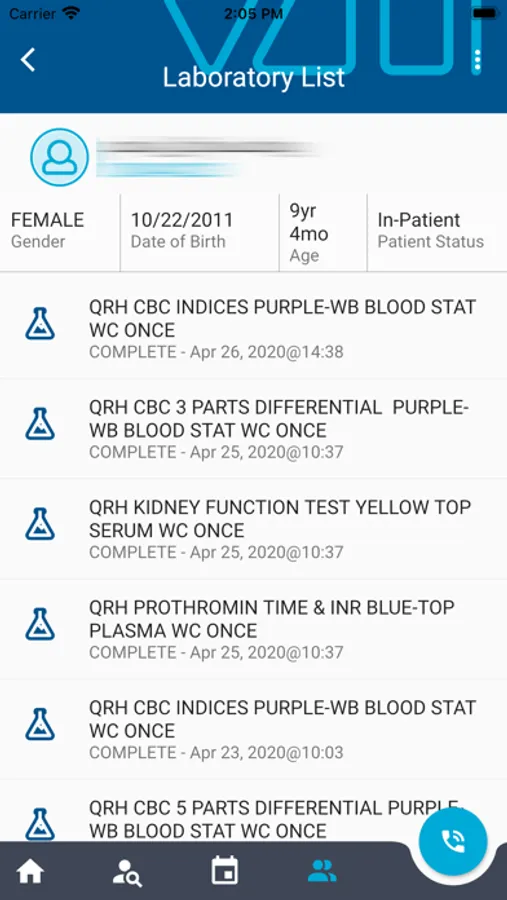 5. Laboratory tests details screen: Displays patient’s laboratory orders and results.