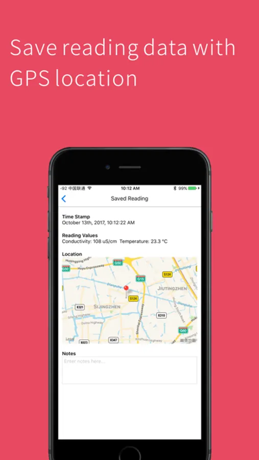 Geo-tagged data storage, data sharing, temperature display, calibration reminders, calibration log, and more.