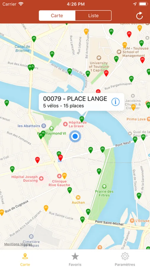 Grâce à cette application mobile, vous pourrez à tout moment consulter le stock de vélos disponibles d'une station VeloToulouse à Toulouse ainsi que les places disponibles en temps réel.