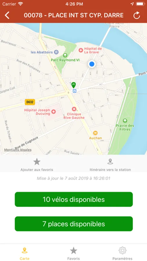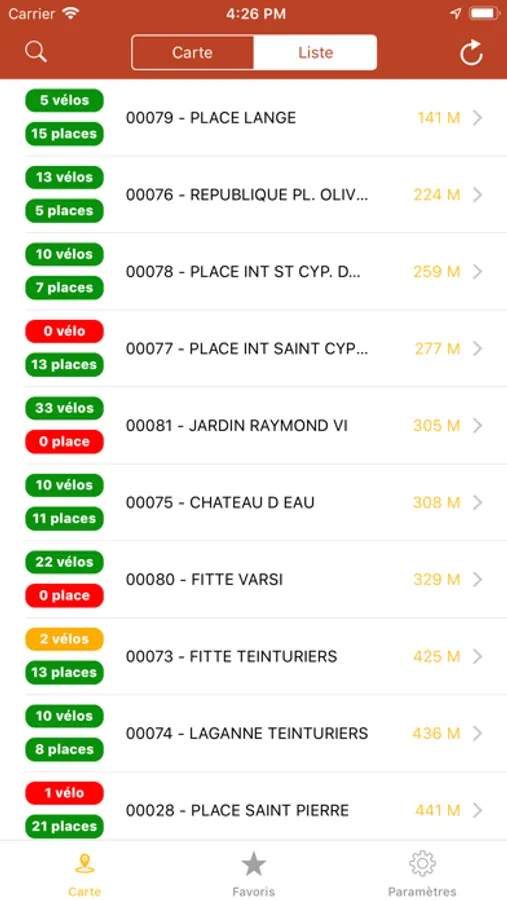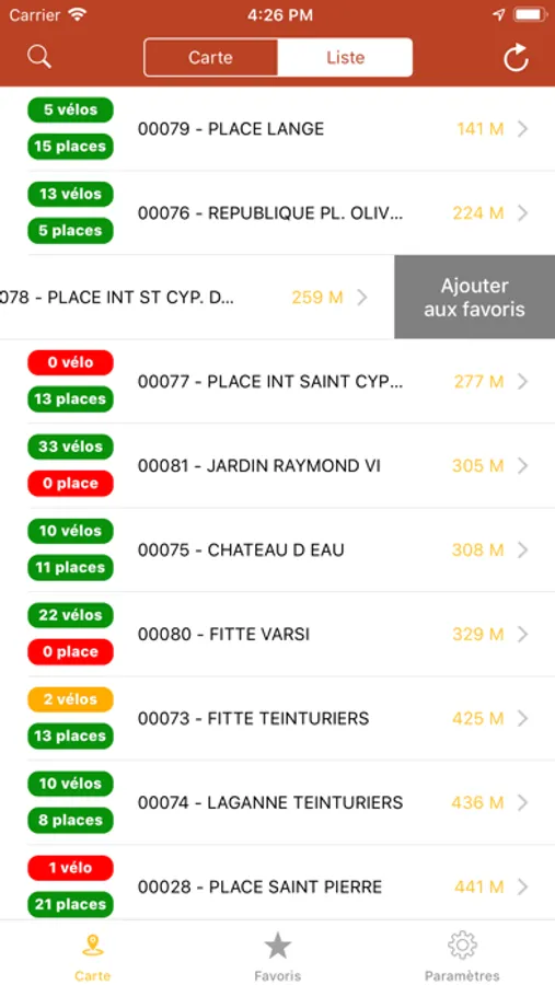 Grâce à la fonction "favoris", vous pourrez garder en mémoire vos stations favorites. Ainsi, vous pourrez consulter en un clic l'état et le stock de la station.