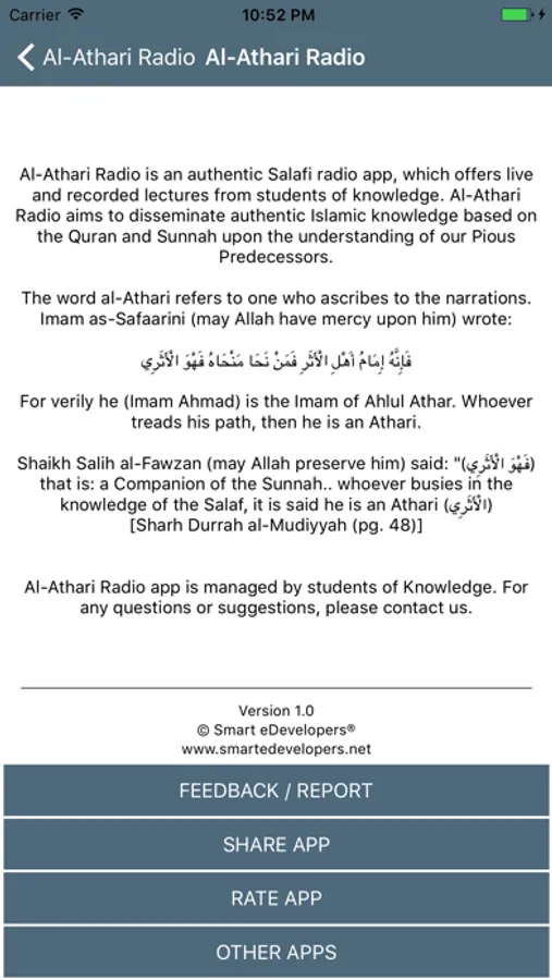 Al-Athari Radio is an authentic Salafi radio app, which offers live and recorded lectures from scholars and students of knowledge. Al-Athari Radio aims to disseminate authentic Islamic knowledge based on the Quran and Sunnah upon the understanding of our Pious Predecessors.