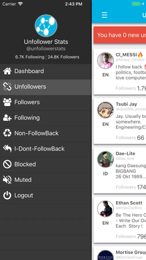 Track your twitter unfollowers & non-followers and unfollow them with some simple click! Even, turn on your notifications and get to know when someone unfollowed you on twitter! Easiest way find out who unfollowed you on twitter.