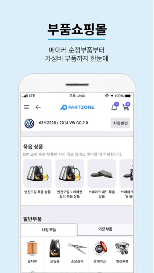 파트존에 차량을 등록하면 각종 내 차 호환부품과 정비 서비스를 한 눈에 볼 수 있습니다.