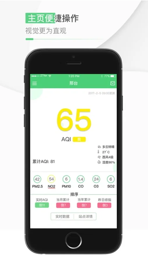 本软件是针对邢台空气质量管控工作而开发的,移动端城市空气质量大数据平台。集成了实时数据、大数据分析、督查管控等功能于一身。