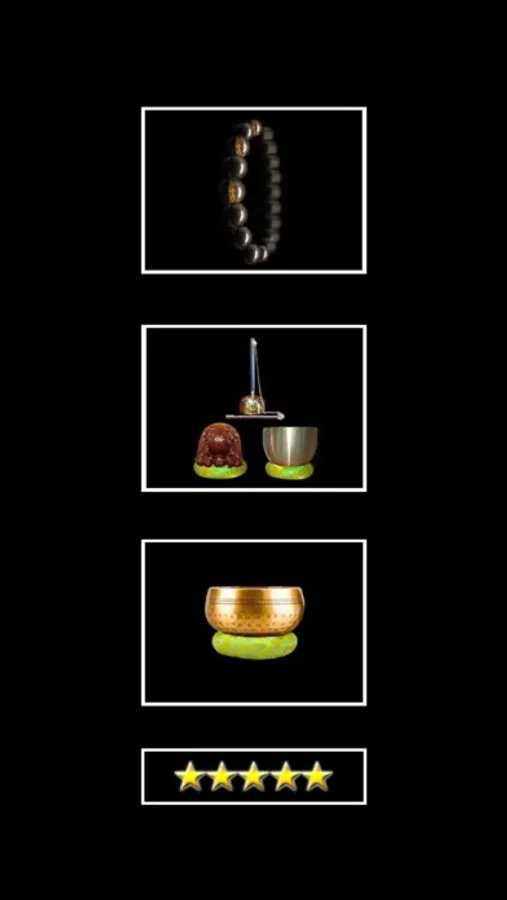 A collection of tools that facilitate prayers in rituals or chanting sutras and mantras. Including prayer beads (mala beads), a wooden fish (Chinese temple block, Mokugyo fish drum) and standing bells.
