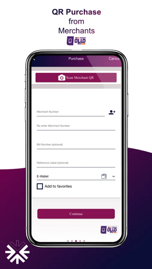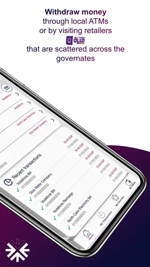 • Create “Favorite list” of your most frequently paid bills to which you can make all payments in just one click or a list of preferred numbers (other Mobile Wallet holders) in addition to a list of favorite merchants and agents