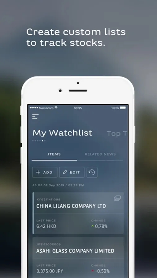The myWealth Switzerland Smartphone app now has the following features: