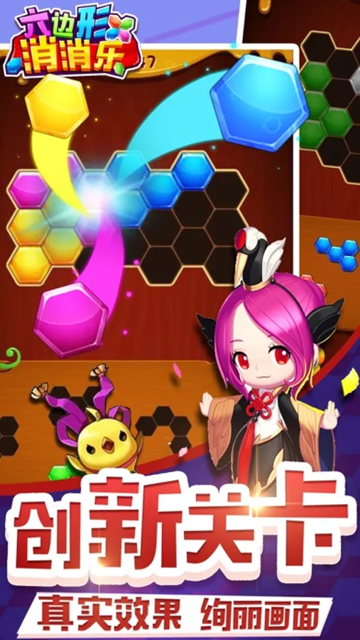 - 动感音乐+3D特效,增添六边形消除的耐玩性