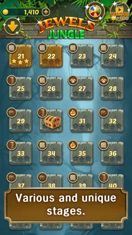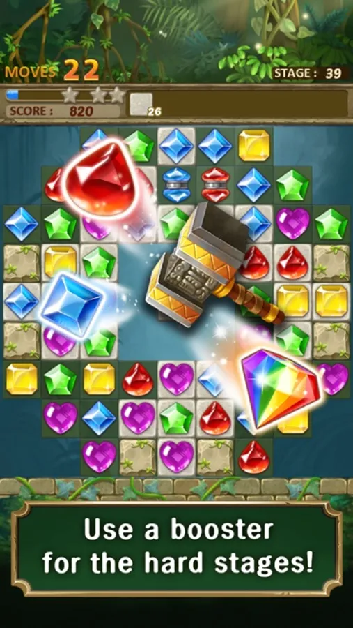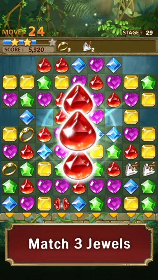 Use various tactics to navigate your way through the jungle and find fancy jewels!