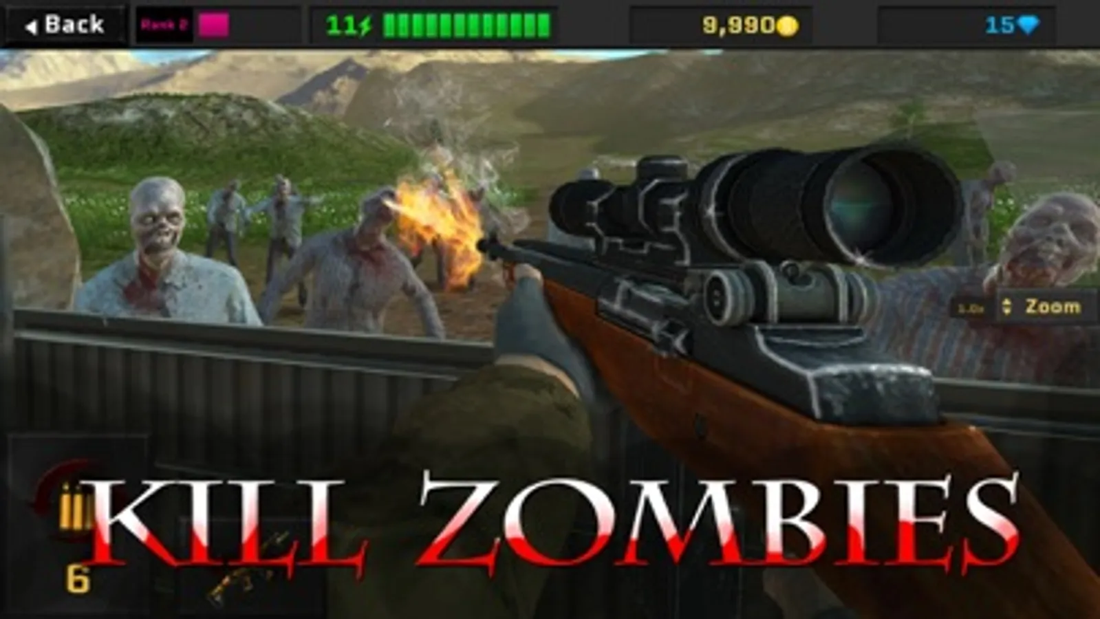 ● Hunting and killing missions to wage war on zombie hordes.