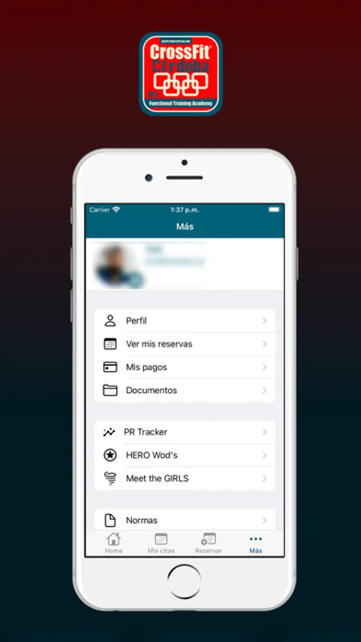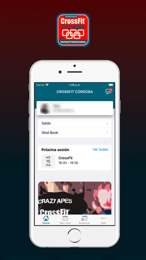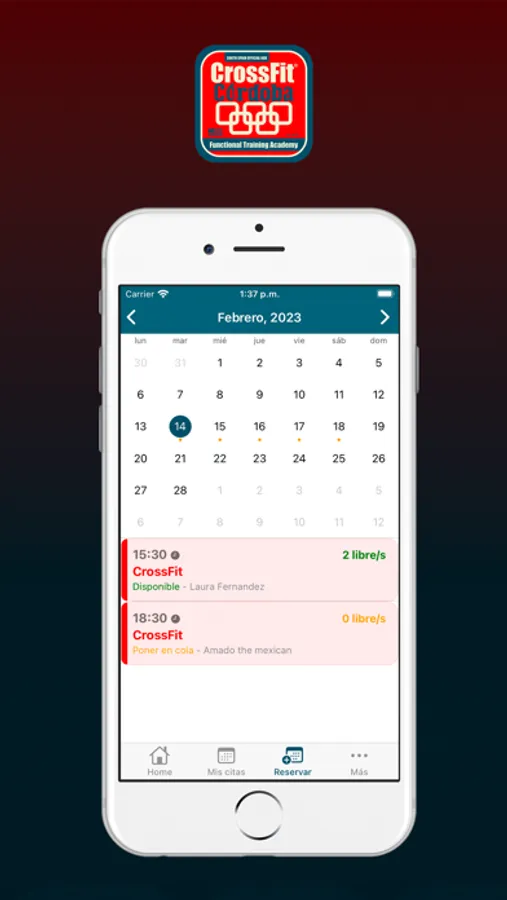 APP para los usuario de CrossFit Córdoba, donde podrá gestionar tanto las reservas de sus clases como todas sus marcas y RM's