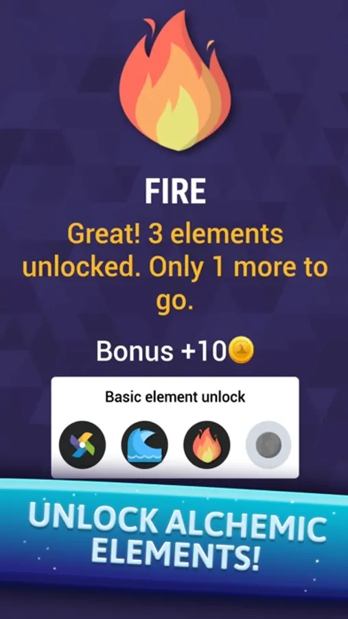 - Unlock an element each time you complete a level. Create the whole universe from the basic elements AIR, WATER, FIRE and EARTH.