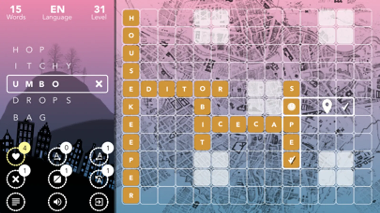 Each map contains bonuses that you can collect by placing words on top of them. The bonuses will make it possible for you to remove obstacles from the map, replace the words you are given and get words with certain start or end letters.