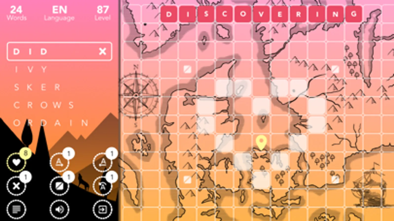 You navigate through different worlds in the game by creating criss-cross patterns with words starting at one end of the map and ending at the designated home location.